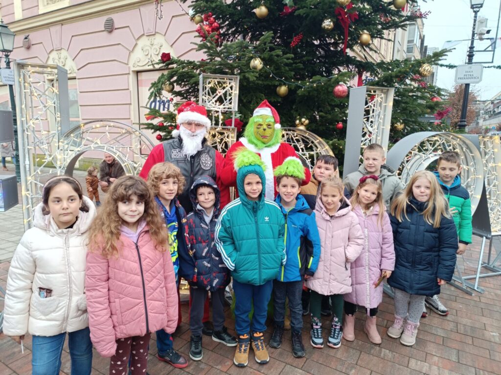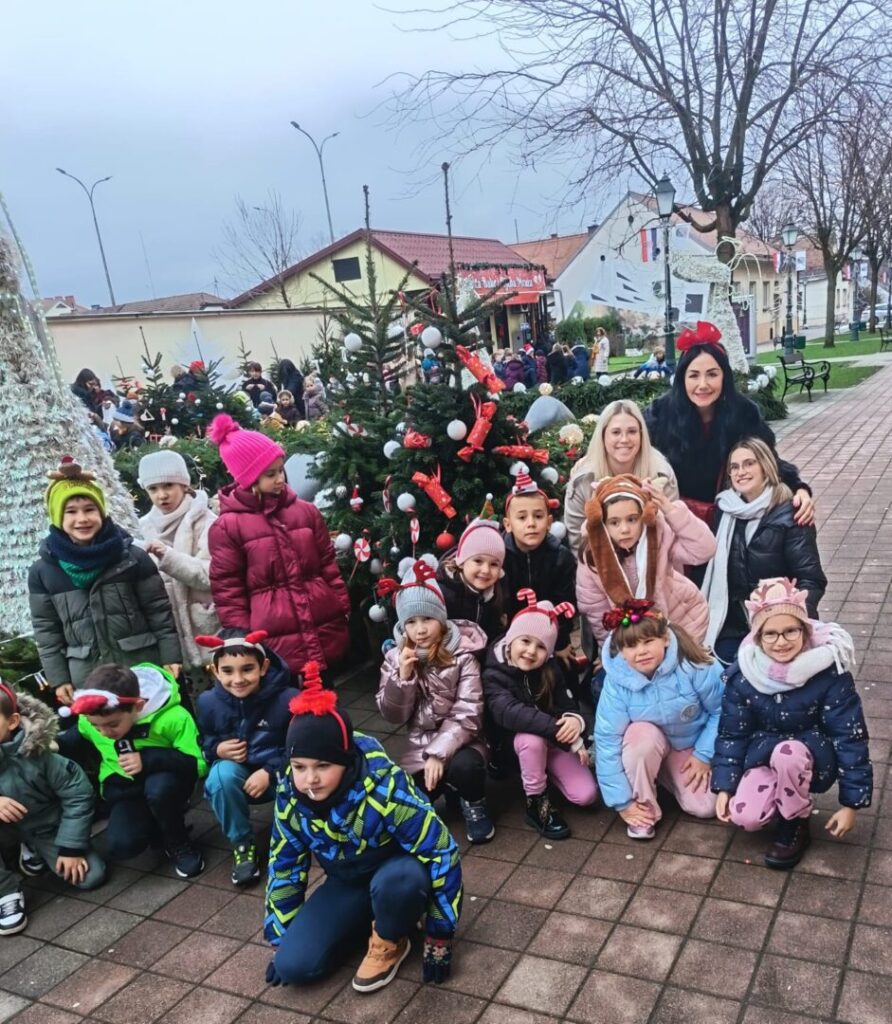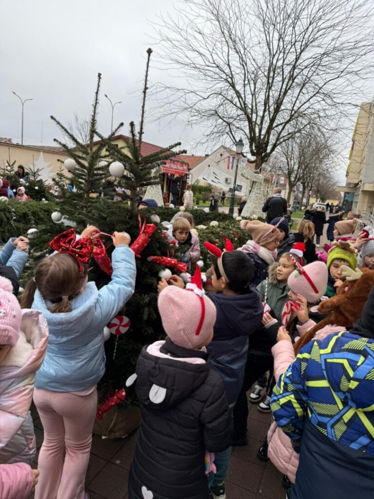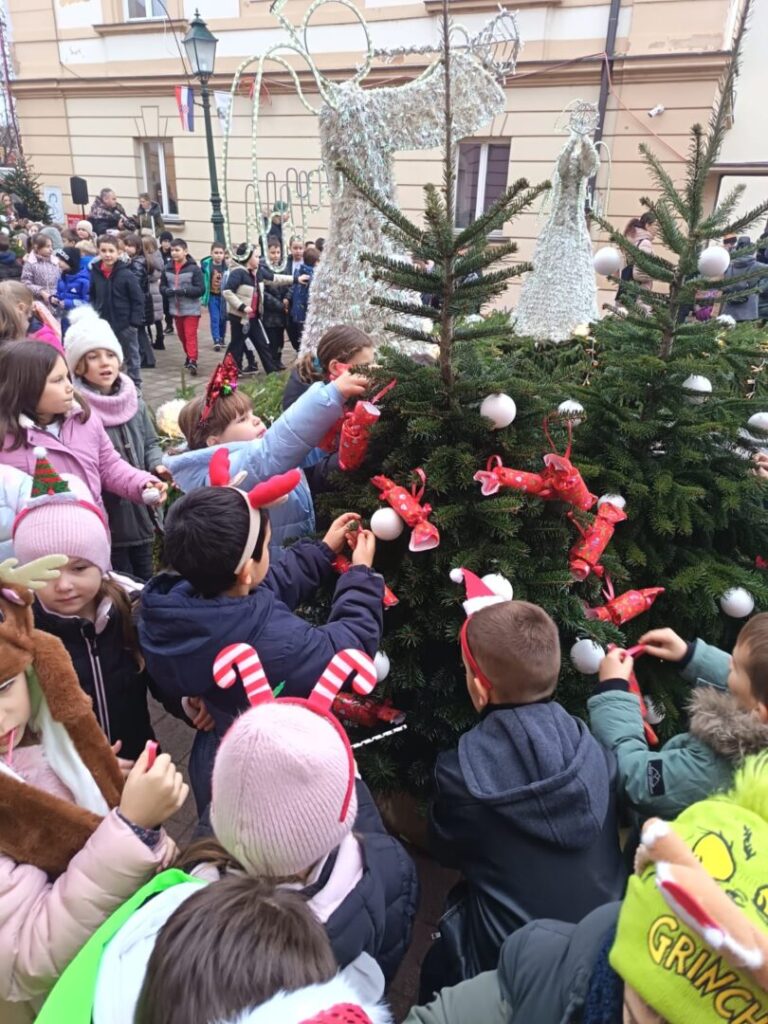 Učenici 1. A i 1. B razreda u petak su u društvu vršnjaka iz ostalih gradskih škola i vrtića okitili božićna drvca crvenim ukrasima koje su u školi izradili. Sve je bilo zanimljivije uz zvuke motora na kojima su dojurili moto mrazovi. Veselje je pojačano i slatkim poklonima kojih nije nedostajalo. Uz malo šetnje po ukrašenom parku i još jedan vikend može početi.