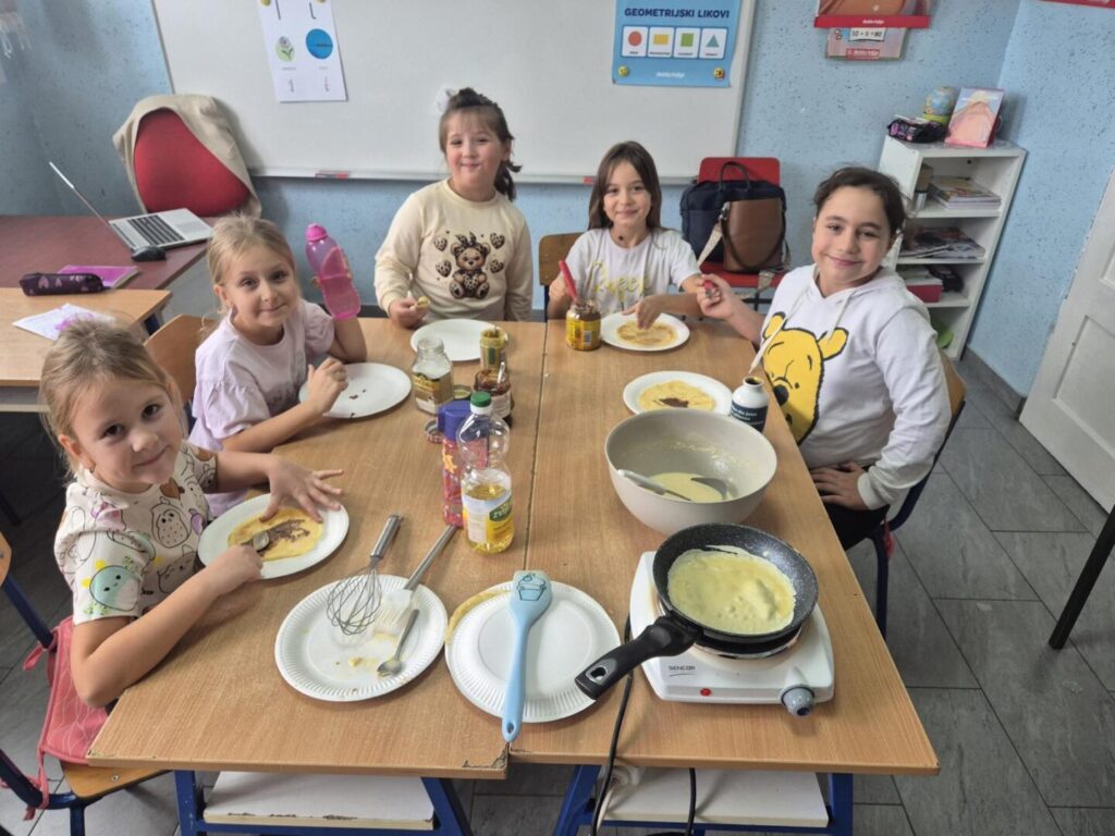 Na kraju dana su se zasladili palačinkama koje su sami zamutili i ispekli. Cijela škola je zamirišala zamamnim mirisom palačinki.