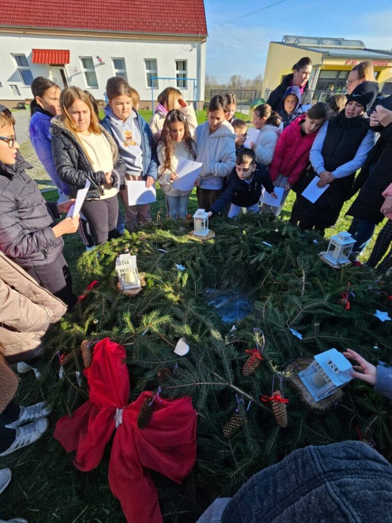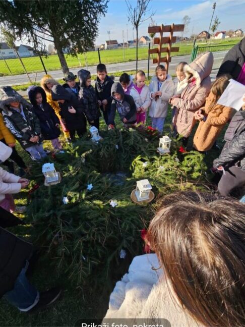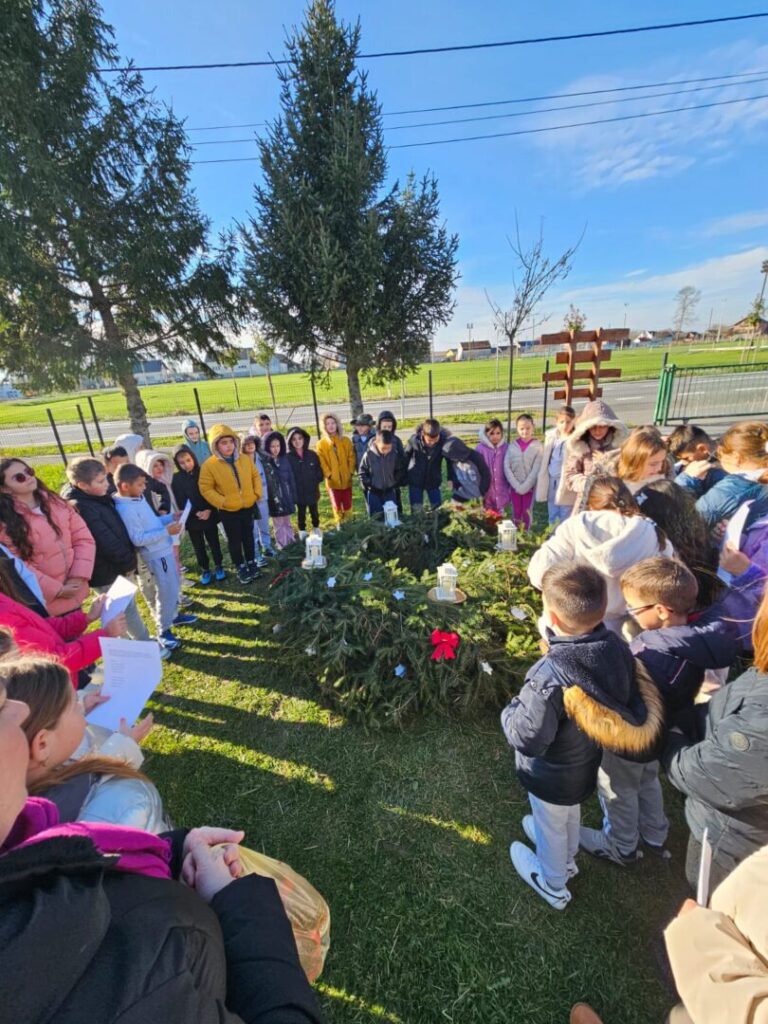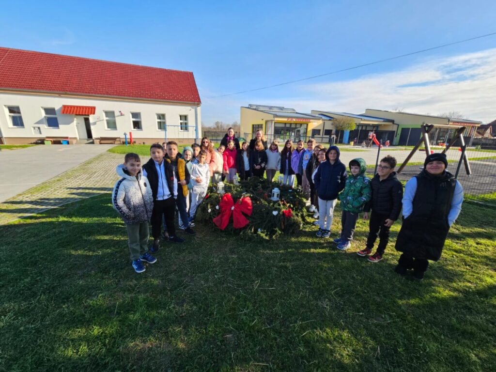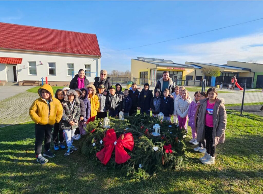 Početkom tjedna, zajedničkim snagama učitelja, u školskom dvoristu izrađen je veliki adventski vijenac od bala slame i zimzelenih grana. Njih je darovala Ivana Katalenić, mama naše učenice 4. razreda. Potom su učitelji zajedno s učenicima dodatno oblikovali i ukrasili adventski vijenac osobno izrađenim nakitom. U petak su, uz prigodnu molitvu, svečano upalili prvu adventsku svijeću. Tijekom mjeseca prosinca, palit će se preostale svijeće te će tako zajedno dočekati najljepši, kršćanski blagdan, Božić.