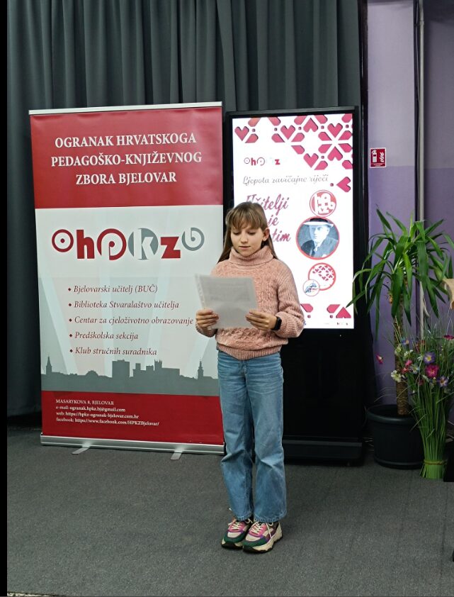 Literarni ostvaraj Maja naše učenice Meri Tomšić iz 4.c razreda pohvaljen je na 4. međunarodnom literarnom natječaju “Ljepota zavičajne riječi 2025.” Tema natječaja bila je “Učitelji koje pamtim”, potaknuta Lovrakovim živim nasljeđem. Na natječaj je stiglo 337 radova iz 133 škole. Radovi su pristigli iz svih hrvatskih županija te čak 6 europskih zemalja (UK, Norveška, BiH, Švedska, Njemačka, Rumunjska). 28. studenog 2025. održana je svečana dodjela nagrada za 4. međunarodni literarni natječaj “Ljepota zavičajne riječi 2025.” u organizaciji Ogranka HPKZ-a Bjelovar u Velikom Grđevcu. Svi nagrađeni i pohvaljeni radovi bit će dostupni u digitalnom zborniku.