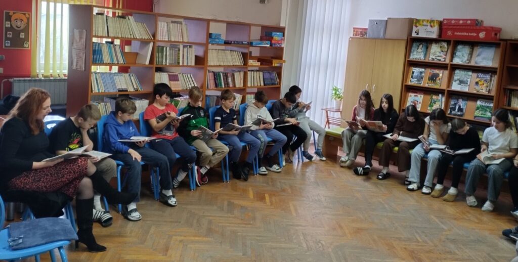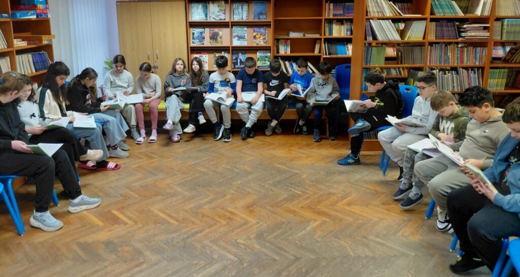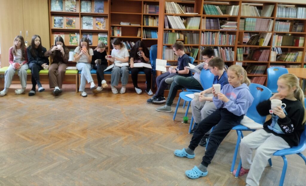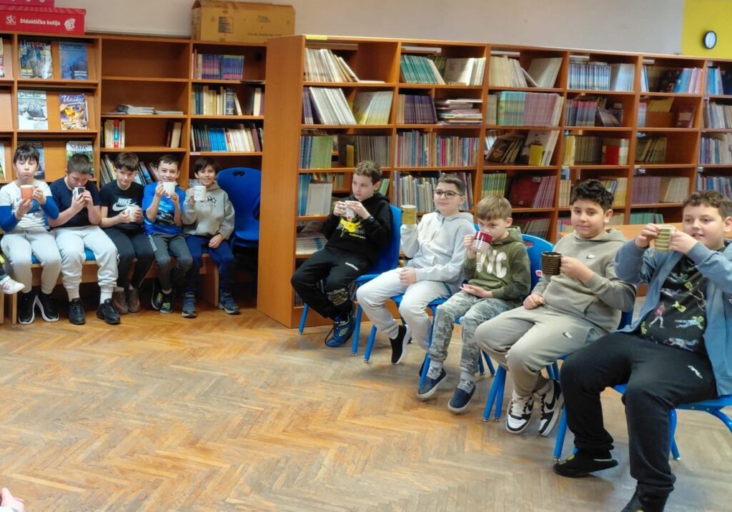 U našoj smo knjižnici čitali naglas ulomke iz knjiga za lektiru u 4.a i 4.b razredu: Šumu Striborovu i Kako smo usvojili baku i djeda. Čitale su knjižničarka, učiteljice i učenici, a zatim smo tumačili nepoznate riječi i objašnjavali tijek radnje. Ovi sati ujedno su i motivacija za nastavak čitanja. Priredili smo i čajanku te su se svi ugrijali toplim čajem.