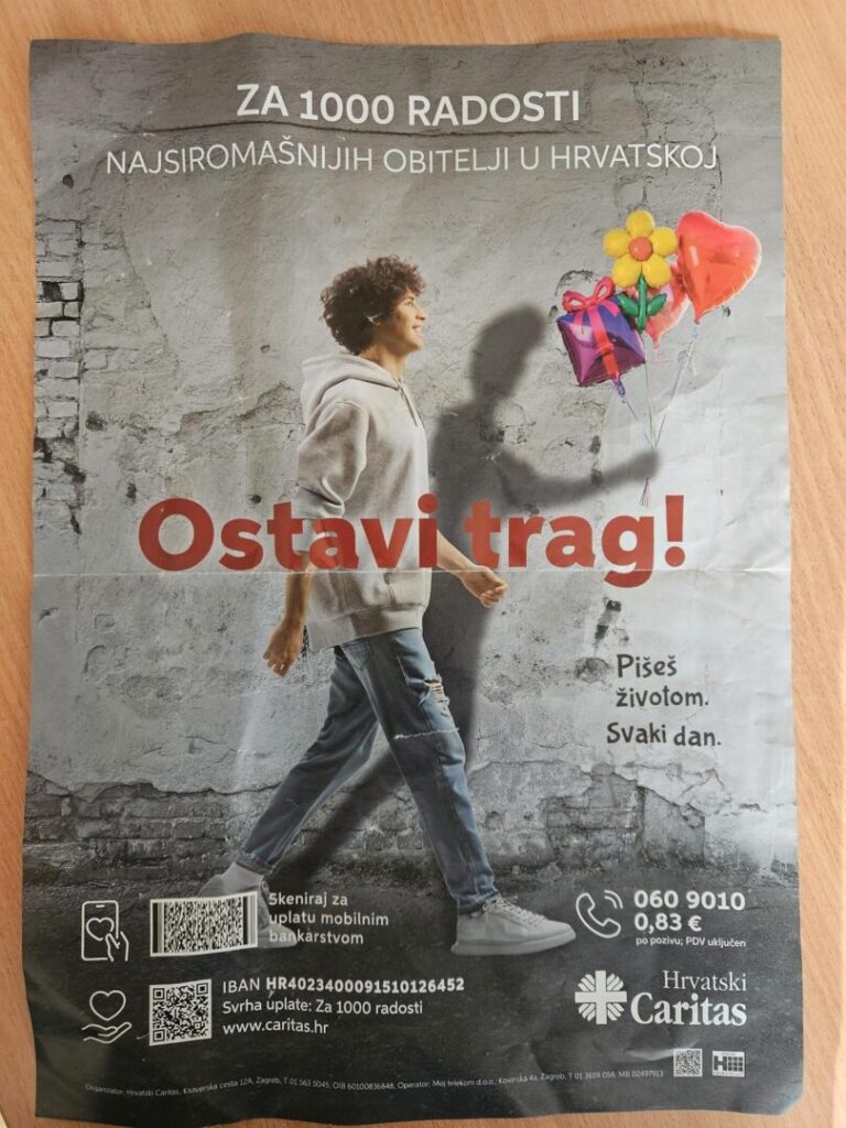Naša škola i ove se godine uključila u tradicionalnu humanitarnu akciju Hrvatskog Caritasa „Za 1000 radosti – ostavi trag!“, koja se provodila uoči božićnih blagdana. Cilj ove akcije je pomoći obiteljima i pojedincima u potrebi te potaknuti učenike na solidarnost, suosjećanje i brigu za bližnje.